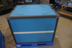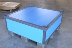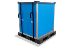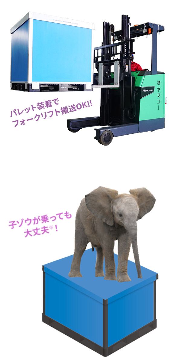 耐荷重が2tある、10mmのプラダンシートを使用した運搬箱で、ボックスパレットとして使用できます。保管時や回収便では、バラして折りたためるため、復路の積載効率を高め、運送コストの削減にもなります。