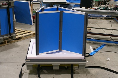 オリウスでは、プラダンの目の部分にはフレーム(写真はアルミフレーム)をかぶせる仕様になっています。