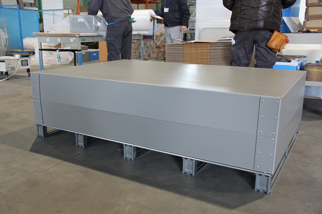 オリウスは重梱包用のコンテナで、通常のプラダンの箱では強度が持たないものに使用します。