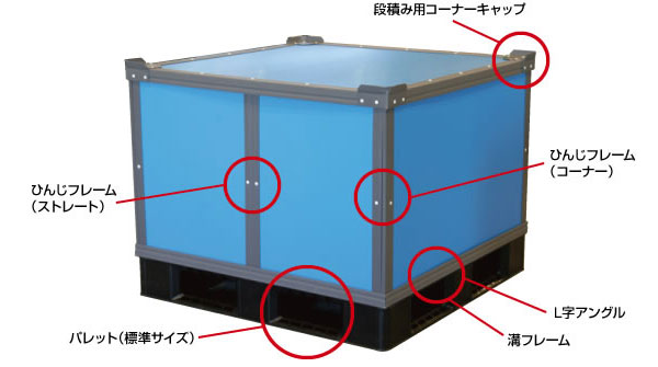 底面と側面が固定されており、木箱に近い形状です。使い勝手を変えずに樹脂化・通い箱化ができます。ボックスパレットのほか、キャスター台車付きも人気です。