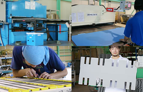 ヤマコーは本社工場にプラダン専用大型プレス機3台を揃えており、抜き加工による量産体制が完備されています。
