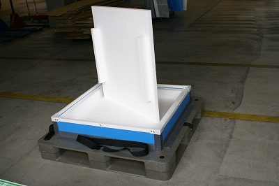 • うえからクッションボードをかぶせたところです。ボードは周囲のクッションにのっかるので機械に直接上からの荷重がかかりません。